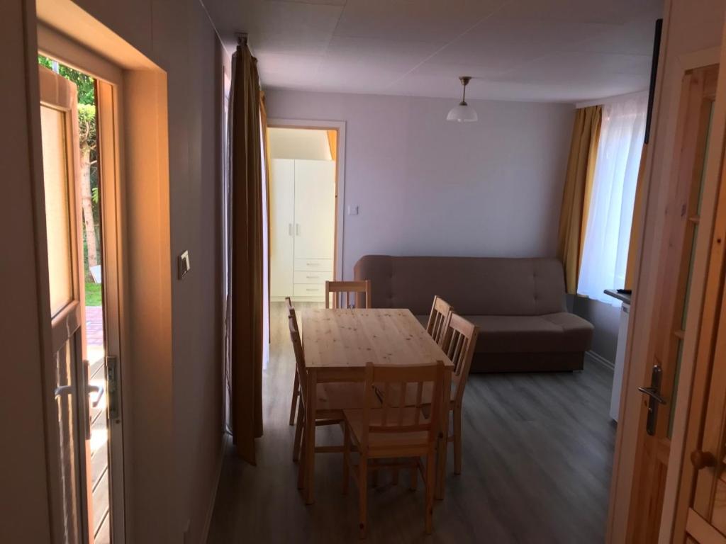 Dom z 2 sypialniami. This holiday home comprises 1 living room, 2 separate bedrooms and 1 bathroom with a bath or a shower. The holiday homes kitchen, which features kitchenware, is available for cooking and storing food. Featuring a terrace, this holiday home also provides a washing machine, a wardrobe and a flat-screen TV. The unit offers 4 beds. Dom wakacyjny - 6 osobowy. Powierzchnia pokoju ok.: 35 mkw. ;